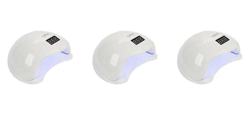 Стильный и функциональный прибор, который способен одновременно сушить ногти на обеих руках. Он имеет съёмный поддон, что облегчает процедуру педикюра. Производитель выбрал для управления сенсорный алгоритм. На корпусе установлен информативный дисплей, отражающий время, оставшееся до процедуры. Пластик очень качественный и не издаёт неприятных запахов. Лампа гибридная, поэтому справляется со всеми материалами.