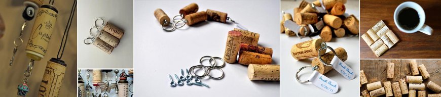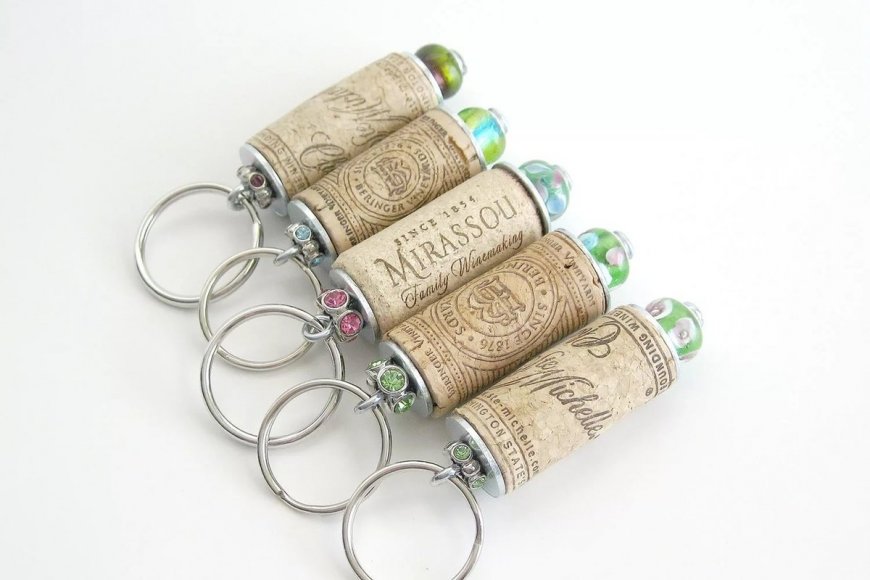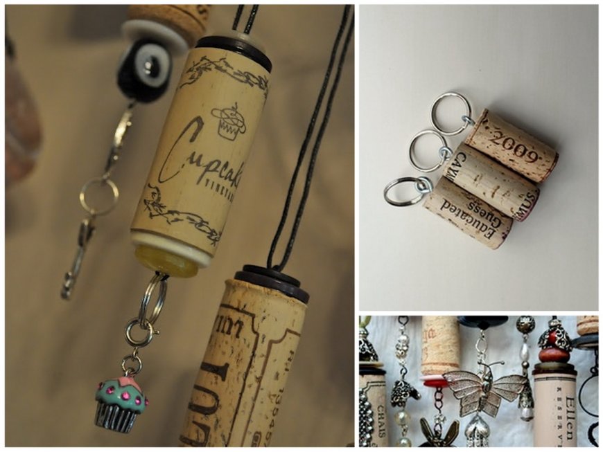 Например, можно взять пробку от вина, вставить в неё держатель и прицепить колечко. И вот, оригинальный брелок уже готов.