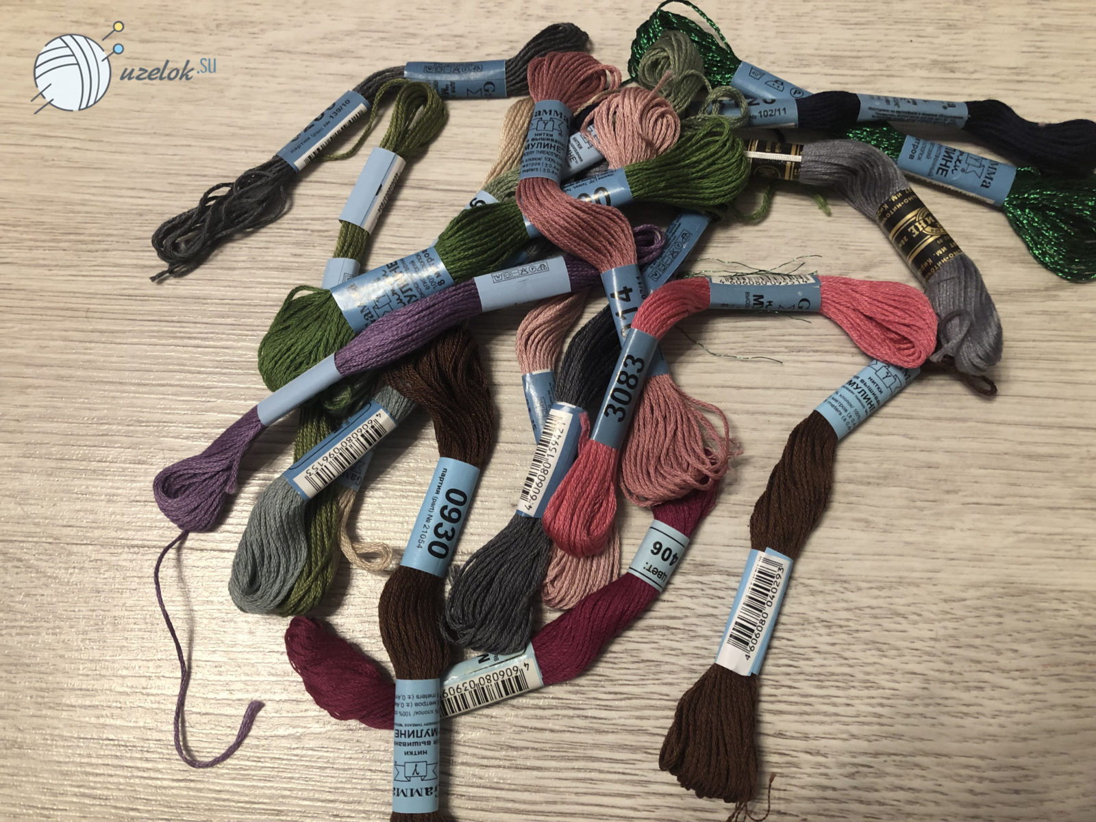 - Опытные рукодельницы советуют для начала брать хлопчатобумажные нитки мулине, в 2 нити.