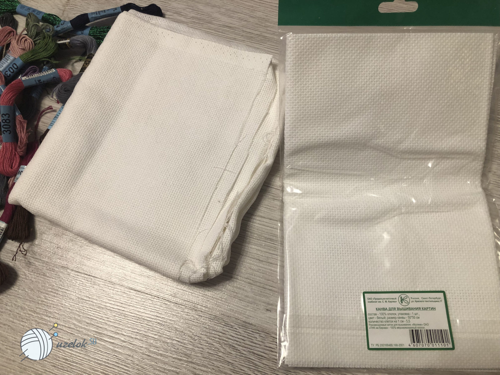 Стоимость базового набора для вышивания (канва, мулине, ножницы) — не более 500 рублей. Один моток мулине стоит в районе 20 рублей. Канва в рулонах продается и в магазинах ткани. Можете сразу взять с запасом метр, два или более. Так будет дешевле, чем покупать уже готовые отрезки.