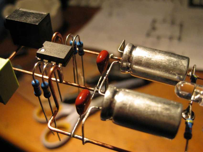 В хорошем ламповом усилителе Hi-End применяются монтажные лепестки и планки. Они используются в виде дополнительных точек. Такая сборка называется навесной. Также вам нужно будет распаивать резисторы и конденсаторы, которые находятся на ламповых панелях. Крайне не рекомендуется использовать печатные платы и собирать проводники так, чтобы получились параллельные линии. Таким образом сборка будет выглядеть хаотичной.
