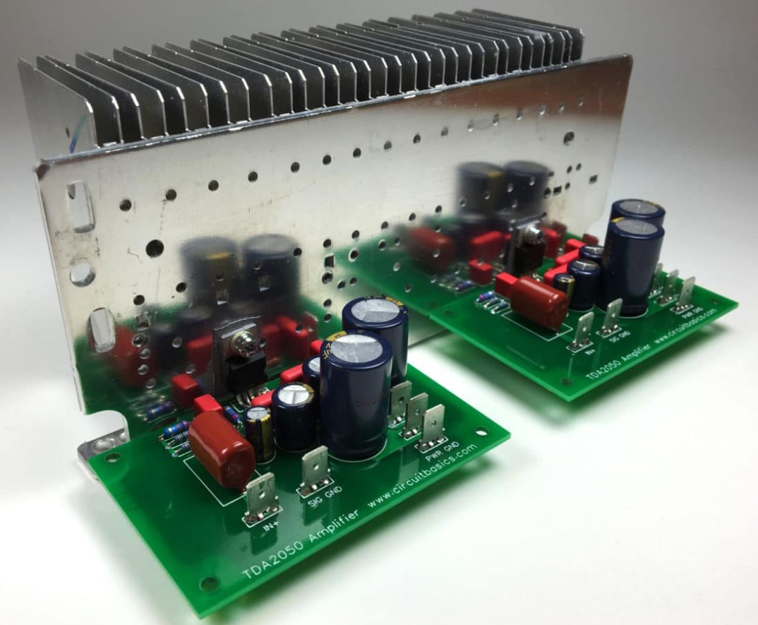 Микросхему необходимо прикрепить к радиатору, иначе она быстро перегреется и будет повреждена. Размер радиатора будет зависеть от максимального рассеивания мощности и тепловых сопротивлений на пути теплового потока от микросхемы TDA2050.
