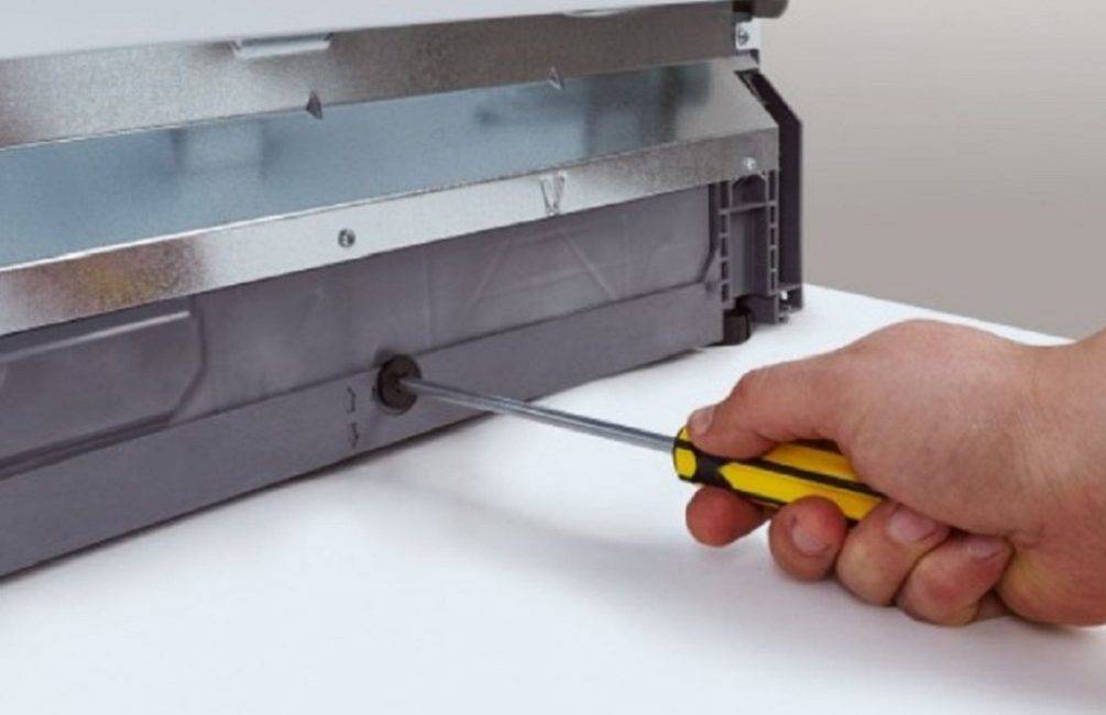 Рекомендуется обклеить внутренние стенки шкафа пароизоляцией. Такой подход продлит срок службы мебели. Чтобы защитить столешницу от воздействия пара, закрепите под поверхностью металлическую пластину. Затем установите посудомойку по уровню, следите, чтобы дверца свободно открывалась.