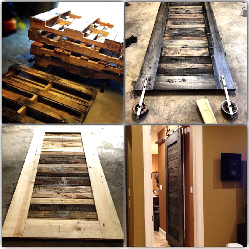 Если материалы, для создания описанных выше моделей, для вас труднодоступны. Или вы хотите сэкономить на создании раздвижной межкомнатной двери… ну или по любой другой причине вы можете использовать старые деревянные поддоны! Нужно просто постараться найти нужное вам количество поддонов.