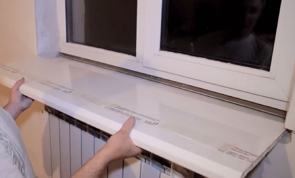 - Прикладываем подрезанную заготовку к месту установки. Если образовалась щель между подоконником и пластиковым окном, то не волнуйтесь — она заделывается герметиком.