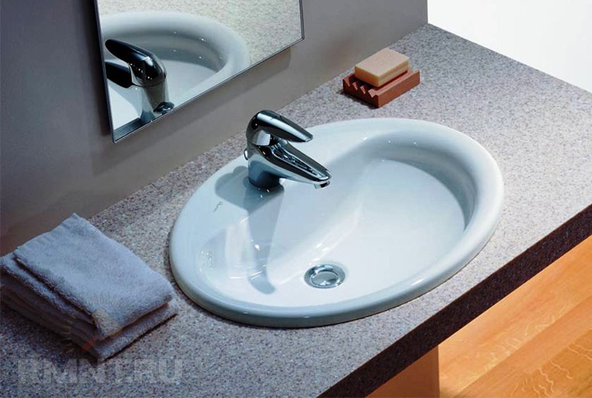 Раковина может устанавливаться на столешницу либо врезным, либо накладным способом. В первом случае чаша опирается на столешницу бортами, во втором — плоским дном.