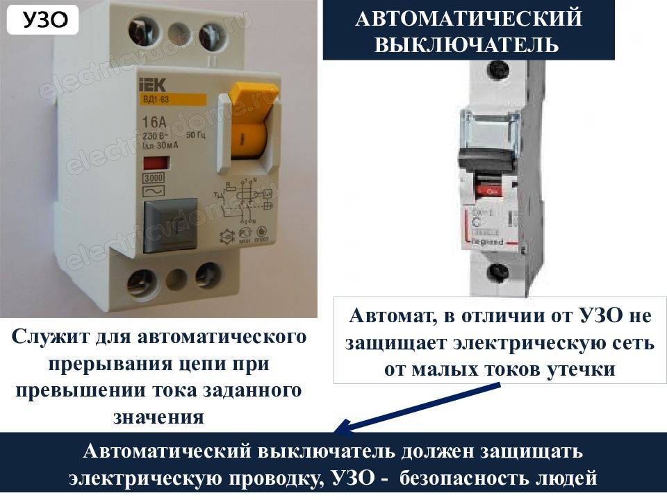 Если привычный большинству пользователей автоматический выключатель защищает от короткого замыкания и выключается при токе в разы превышающем номинальный, то УЗО защищает человека при едва уловимом электротоке и выключает водонагреватель. Поскольку если не отключить прибор в считанные доли секунды (в течении которых срабатывает защитное отключение), то через тело может пройти значительно больший ток и привести к травме (в том числе с вероятным смертельным исходом).