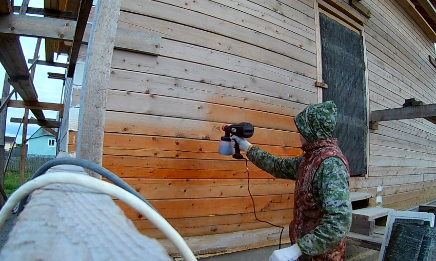 - Сруб, каркасный и щитовой дом — сначала необходимо устранить все дефекты чтобы потом не тратить время на демонтаж панелей. Снимается весь лишний декор, который все равно не будет видно под покрытием. Пустоты расширяются и зачищаются. Плесень удаляется. Затем нужно провести обработку антисептиками и огнезащитными веществами — антипиренами. Зачищенные щели, трещины, сколы замазываются шпаклевкой по дереву и герметизируются. Если не проведена гидро- и паро- изоляция цоколя, желательно ее провести, чтобы влага не скапливалась внутри.