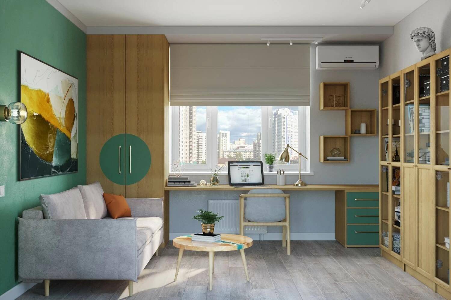 В этом проекте использовали инженерную доску, но идею из этого проекта можно взять на вооружение и соединить несколько видов ламината на полу, а также оригинально оформить стену. Проект квартиры «Яркий микс», дизайн-бюро Алёны Горской