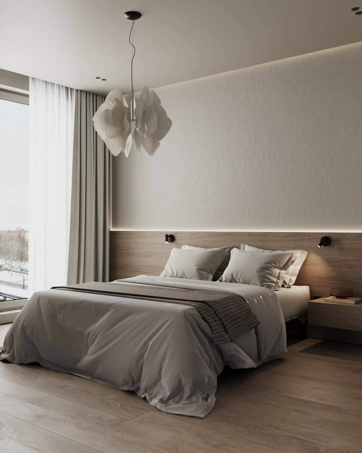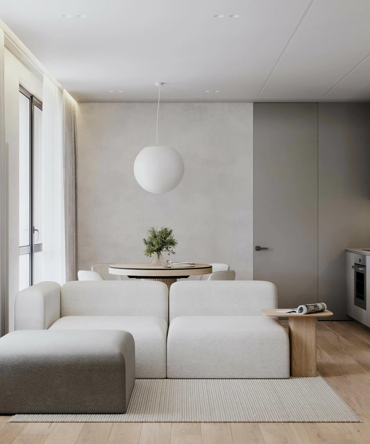 Благодаря эстетичном виду и лёгкому уходу ламинат — самое популярное из бюджетных покрытий. Проект квартиры для супружеской пары на ул. Беринга (Санкт-Петербург), дизайнер Артём Алексеев