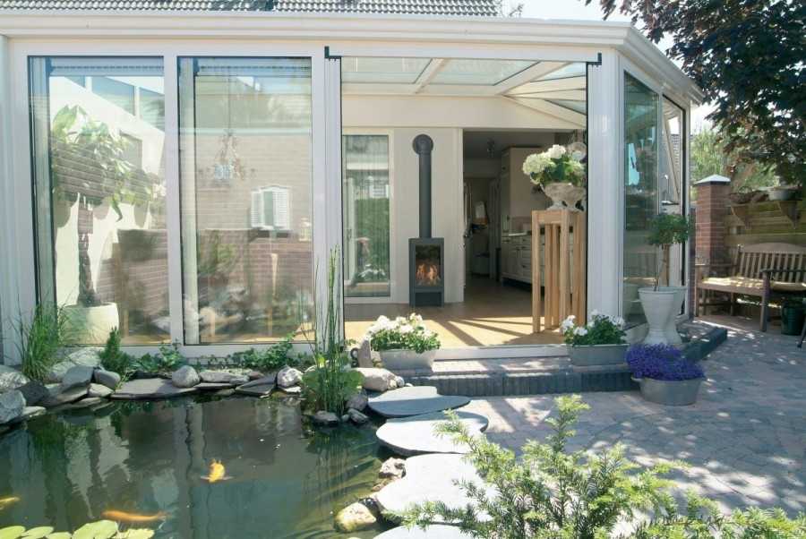 Установив раздвижные двери для веранды можно трансформировать закрытую веранду в открытую.