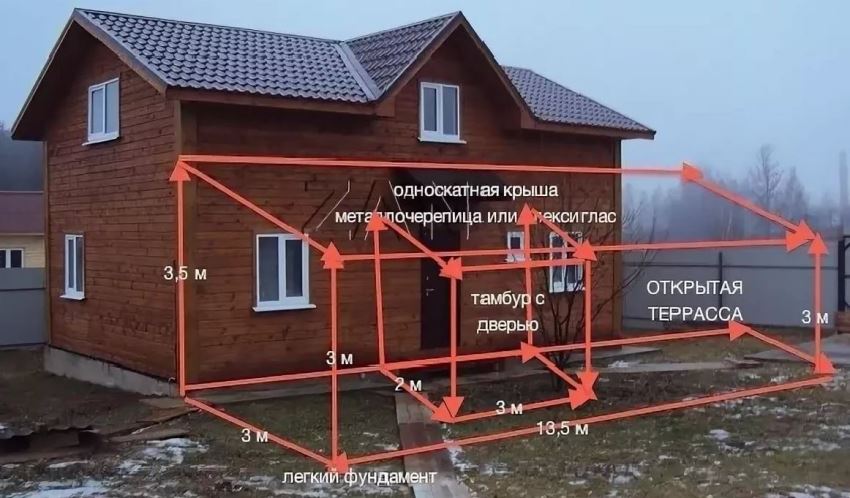 Базовая конструкция веранды к дачному дому