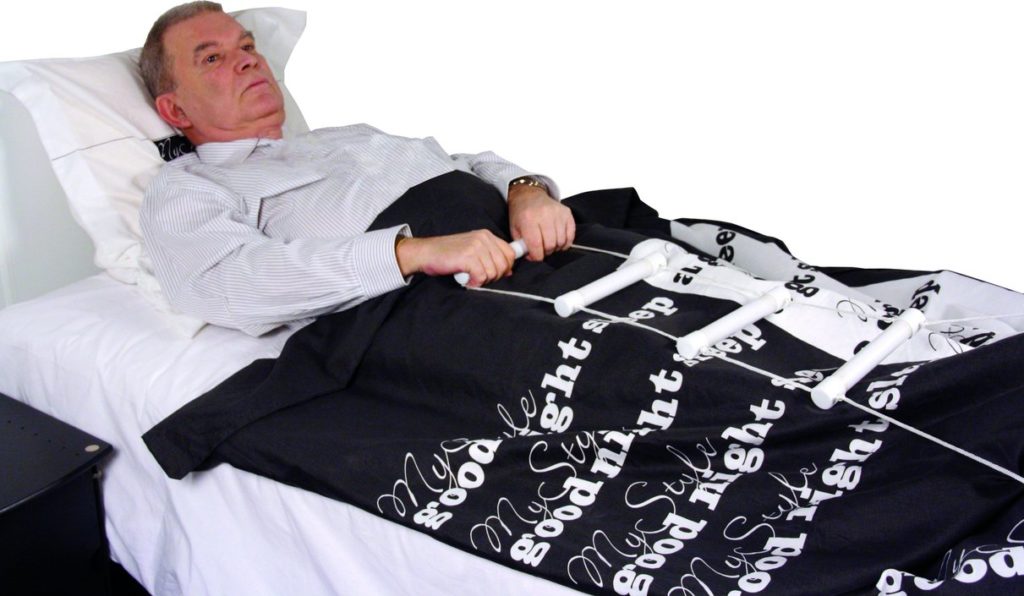 Для лежачих больных. С помощью такой лестницы человек сможет сам садиться на кровати