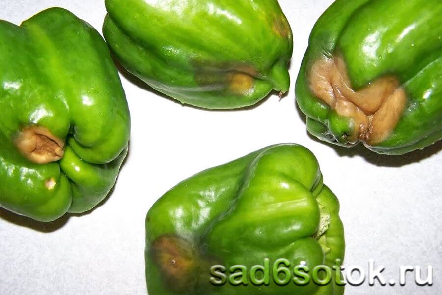На перцах пятно возникает в период созревания плодов. На боках вначале образуются водянистые участки, затем они увеличиваются до 0,5–8 см в длину, чернеют или буреют. Цвет пятна изменяется из-за размножения сапрофитных грибов на пораженных участках.