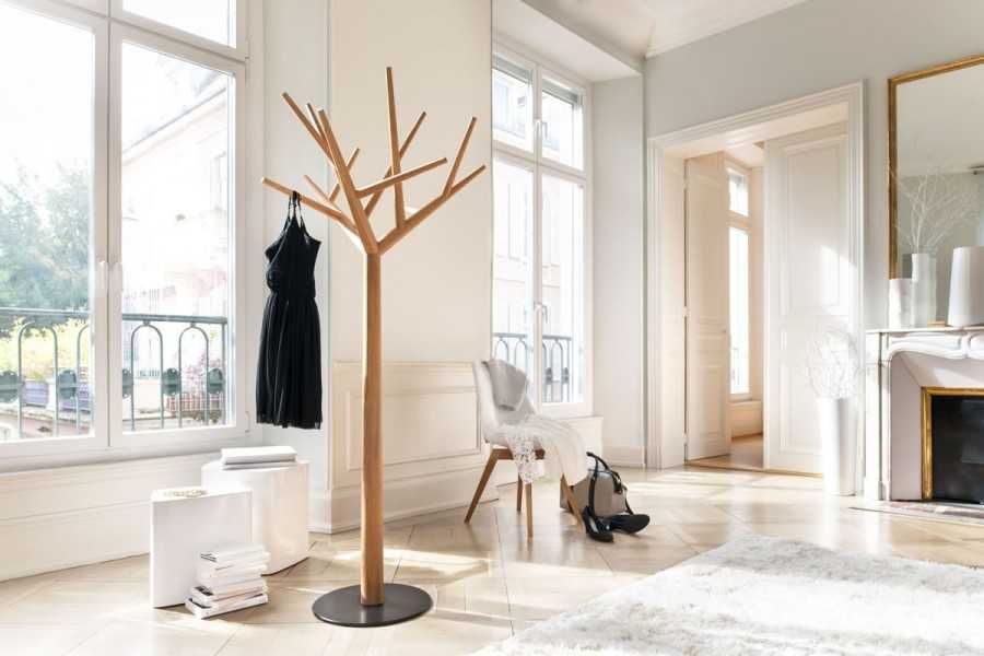 Прекрасным решением станет установка напольных вешалок в прихожей. Такая конструкция позволит разместить пальто, куртку или плащ, а также зонт и шляпу