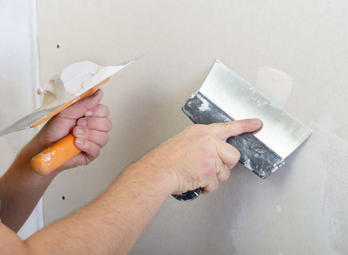 В отличие от других поверхностей, листы гипсокартона обладают практически безукоризненной фактурой. Если монтаж выполнялся правильно, ровнять их не придется. Но места крепления листов и стыки остаются заметными как под обоями, так и под другими отделочными материалами, включая декоративную штукатурку. Шпатлевание гипсокартонных листов заключается в устранении этих изъянов. Замазывать слегка притопленные саморезы и стыки стартовой или универсальной шпатлёвкой удобнее узким шпателем, а наносить финишную смесь — широким. Второй слой наносится для улучшения адгезии и сохранения картонной основы для проведения повторной отделки.