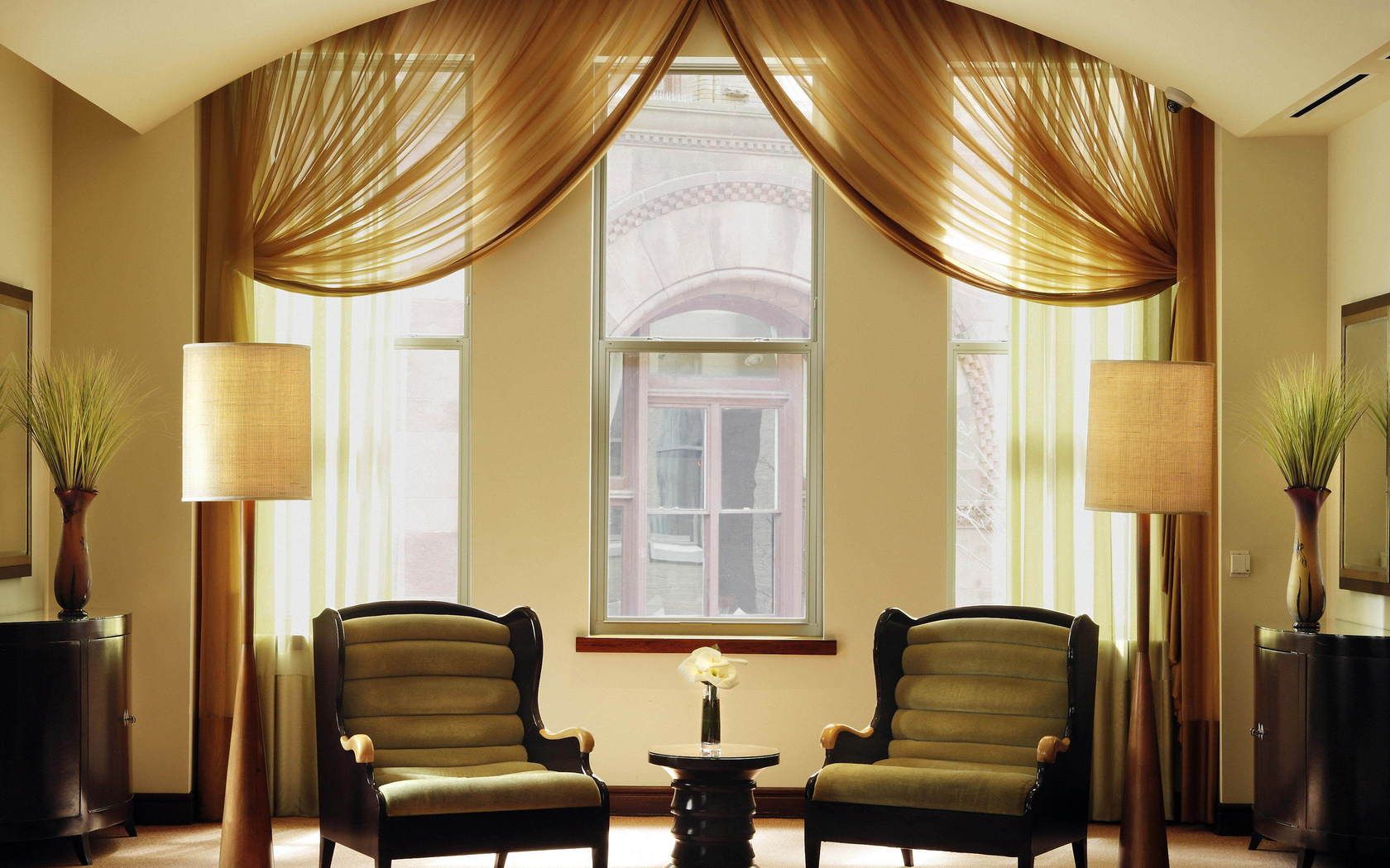 Для больших окон выбирают занавески от потолка до пола.