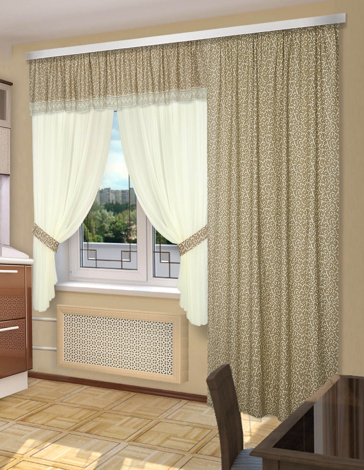 По длине портеры могут быть короче, чем тюль. Это создаст органическую связь между ламбрекенами в вышней части и углами.