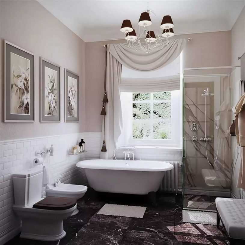 Если площадь ванной находится в пределах от 5 до 10 кв. м, то это даёт больше возможностей для комфортного использования ванной и туалета. В этом случае можно здесь уместить отдельно расположенные ванную и душевую. Если в стене имеется углубление, то это позволит разместить в нём стиральную машину.