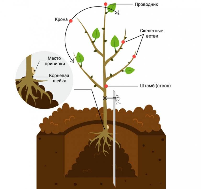 - Корневая шейка саженца должна находиться на 6–7 см выше уровня земли.