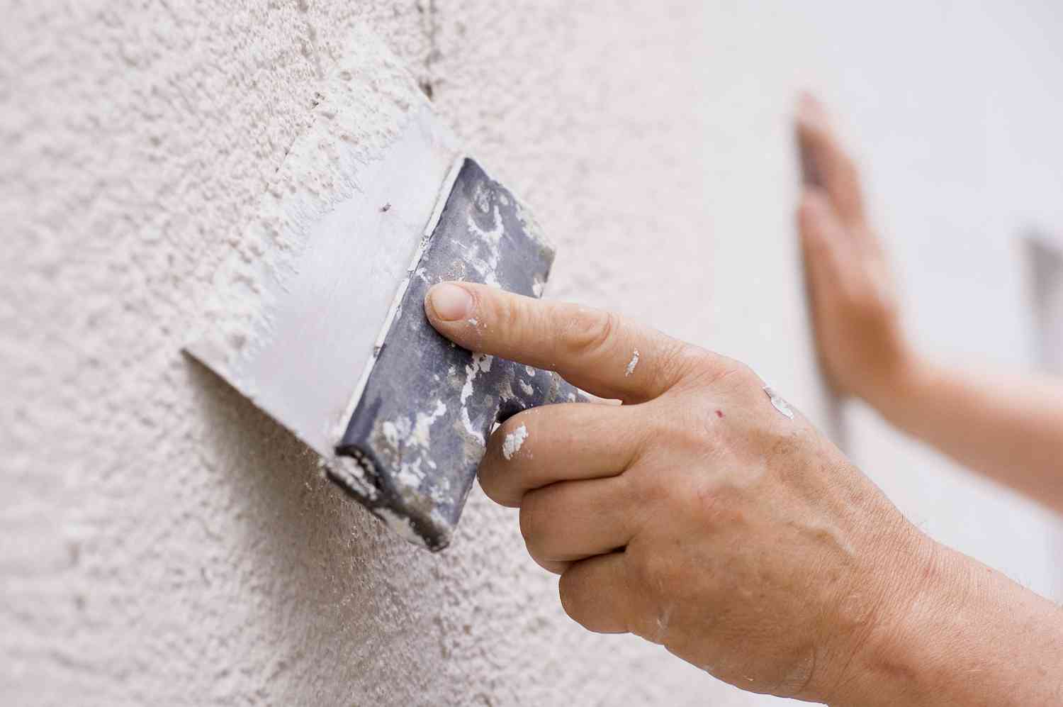Если стена имеет большое количество углублений, трещин и неровностей, заполните их цементной штукатуркой. Это сделает стену ровной и заделает все имеющиеся дыры.