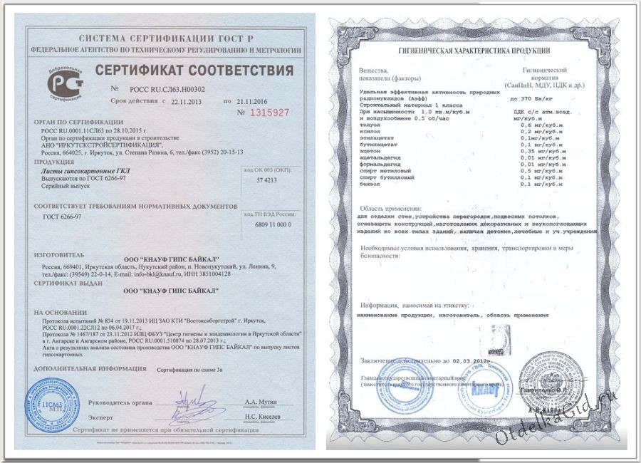 Сертификат качества на гипсокартон