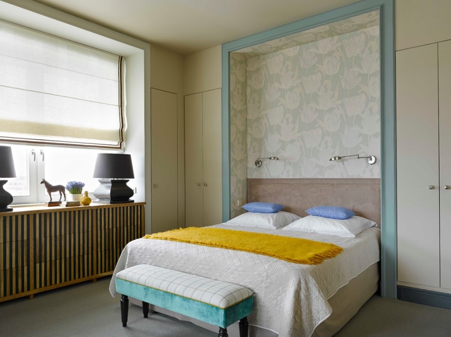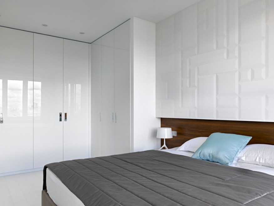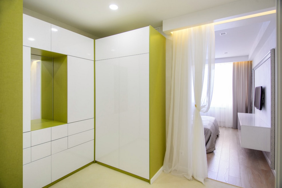«Невидимые шкафы». Актуально для встраиваемых шкафов-купе, устанавливающихся на всю стену. Такой угловой шкаф в интерьере практически не заметен, поскольку его фасад соответствует расцветке стен.