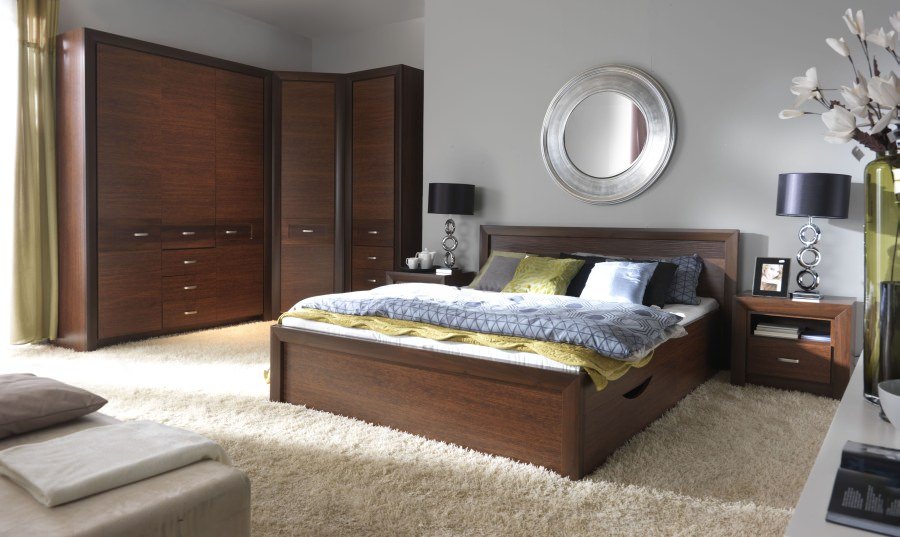 Классика – тот случай, где уместен не только деревянный массив, но еще и ценные дорогие сорта. Резной декор, узоры на стекле, позолота, состаренная фурнитура – все это будет кстати в такой спальне. А вот для неоклассики от всей роскоши можешь оставить только несколько детализированных акцентов.