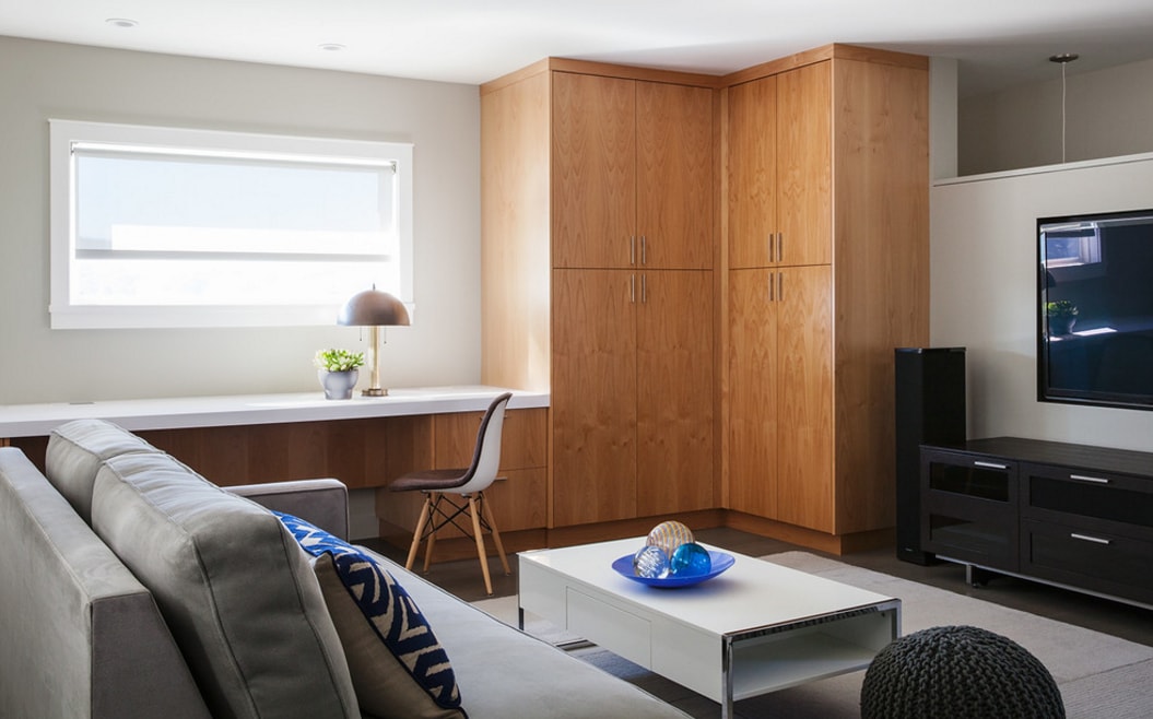 Оригинальное решение для обстановки помещения: встроенный шкаф в гостиную