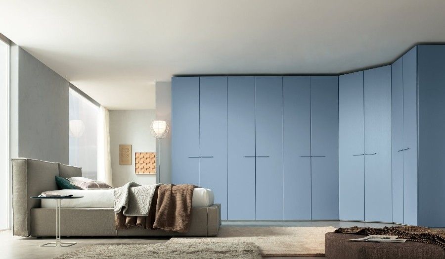 Шкаф вдоль короткой стены длинной вытянутой комнаты поможет скорректировать ее геометрию. Если у тебя осталась перегородка от вынесенного балкона – вынеси шкаф-купе прямо туда. А любителям креативных асимметричных интерьеров со сложной геометрией и формами подойдут радиусные модели.