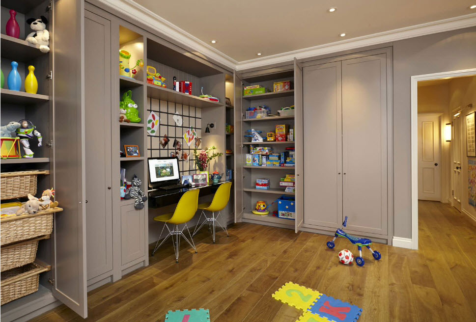 Во встраиваемых шкафах можно разместить не только полки для хранения предметов, но и целые единицы мебели.