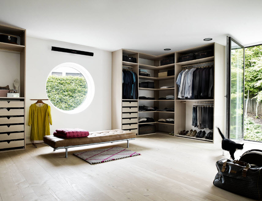 - Там можно хранить одежду, если спальня в доме достаточно скромная по своей площади.
