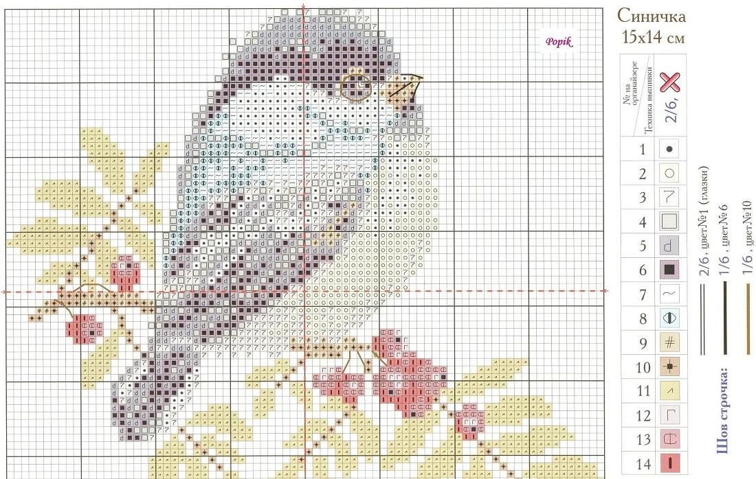В схемах для вышивания указывается цвет необходимых ниток и другие важные детали