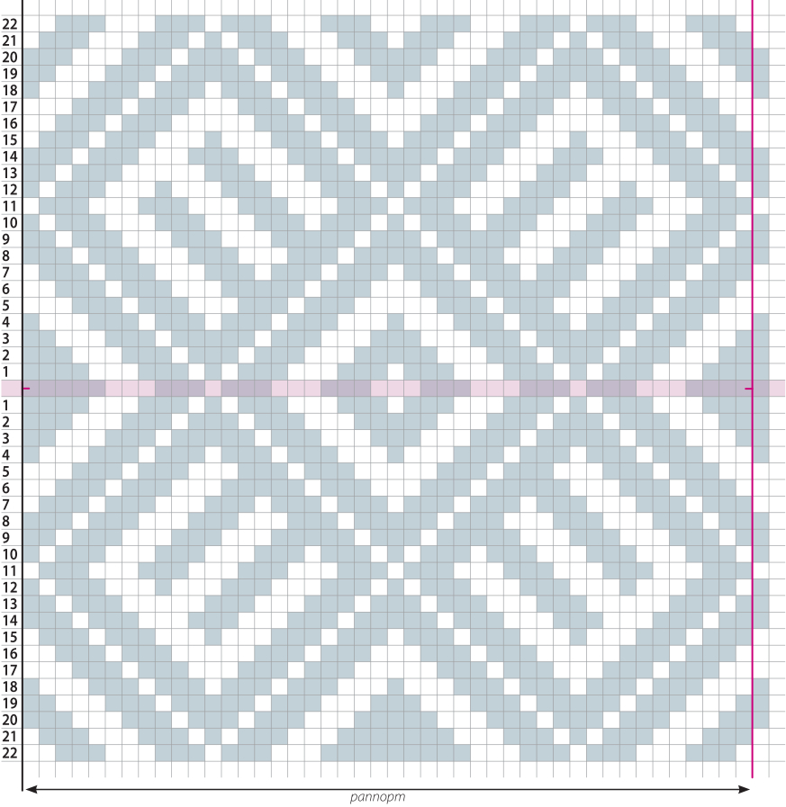 - 22 нижний ряд: Раппорт: 2 под, 3 над, 3 под, 3 над, 1 под, 3 над, 3 под, 3 над, 3 под, 3 над, 3 под, 3 над, 1 под, 3 над, 3 под, 3 над, 1 под до конца ряда.