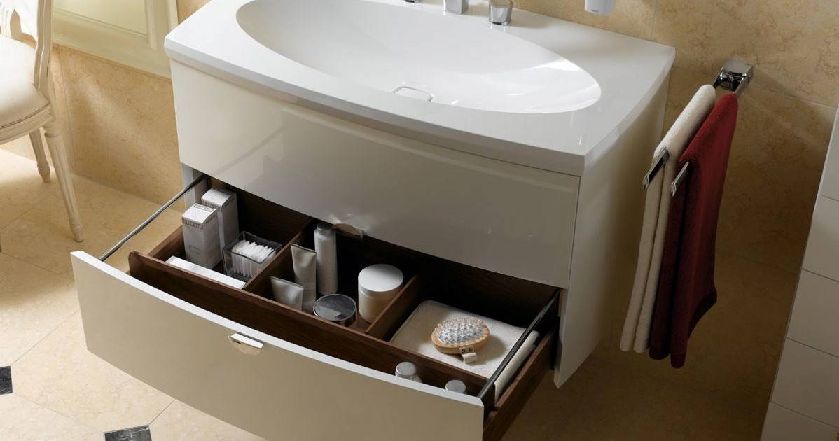 - под слишком низкий умывальник нельзя поставить стиральную машину, корзину для грязного белья или другие атрибуты, обязательные для ванной комнаты. Это особенно остро чувствуется в очень маленьких помещениях, где стоит экономить каждый миллиметр свободного пространства.