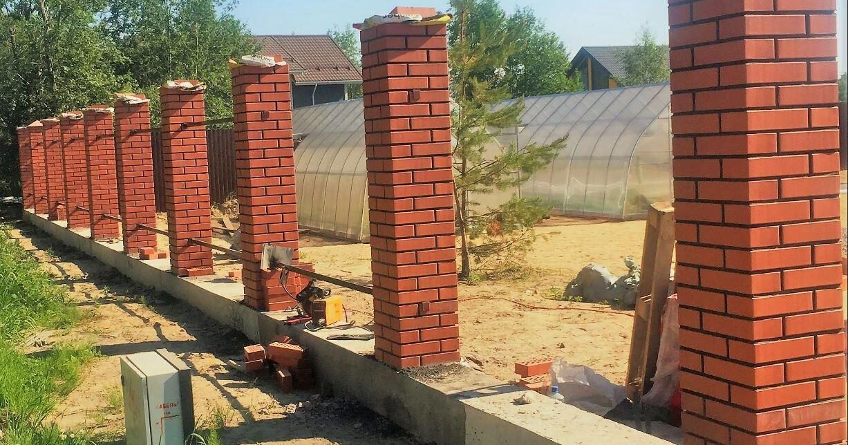 Забор из профнастила с кирпичными столбами