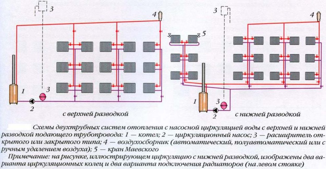 Варианты схем отопительных систем