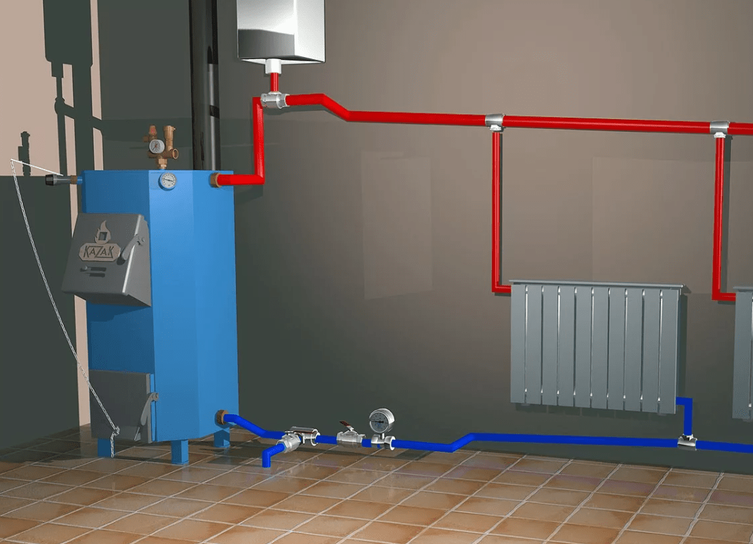 - Подача. Разогретый теплоноситель движется от котла к радиаторам.