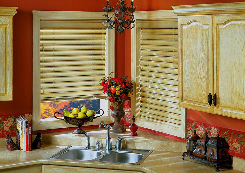 Деревянные жалюзи: фото изделий в интерьере кухни