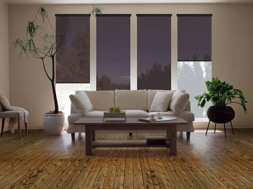На сегодняшний день это самые популярные жалюзи. Здесь отсутствуют ламели. Вместо них используется ткань или гибкое полотно. Есть модели с коробом, куда жалюзи сматываются в рулон. А есть без короба.