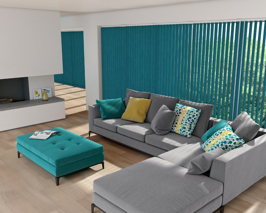 Вертикальные – вариант наиболее знакомый глазу, привыкшему к обычным шторам. Основные элементы жалюзи – ламели располагаются перпендикулярно полу, соответственно сдвигаются жалюзи по типу портьер: влево-вправо. Хорошо подходят для панорамных окон и раздвижных дверей, ведущих например на террасу или лоджию.