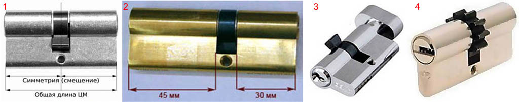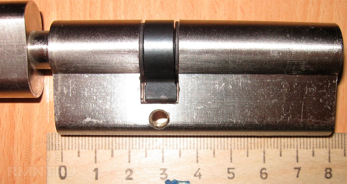 Длина внутренней и наружной частей цилиндров при одинаковом поперечном сечении может быть различной. Длина внутренней части влияет только на эстетику. Главное, чтобы торец секрета не был утоплен за накладку замка или дверной ручки. Длина наружной части более важна. При отсутствии в конструкции замка броненакладки торец секрета должен располагаться заподлицо с планкой на двери. Допускается выступ в пределах 3 мм. Чем он больше, тем легче злоумышленнику вскрыть личинку разрушающим способом. При наличии броненакладки торец секрета должен подходить к ней как можно ближе.