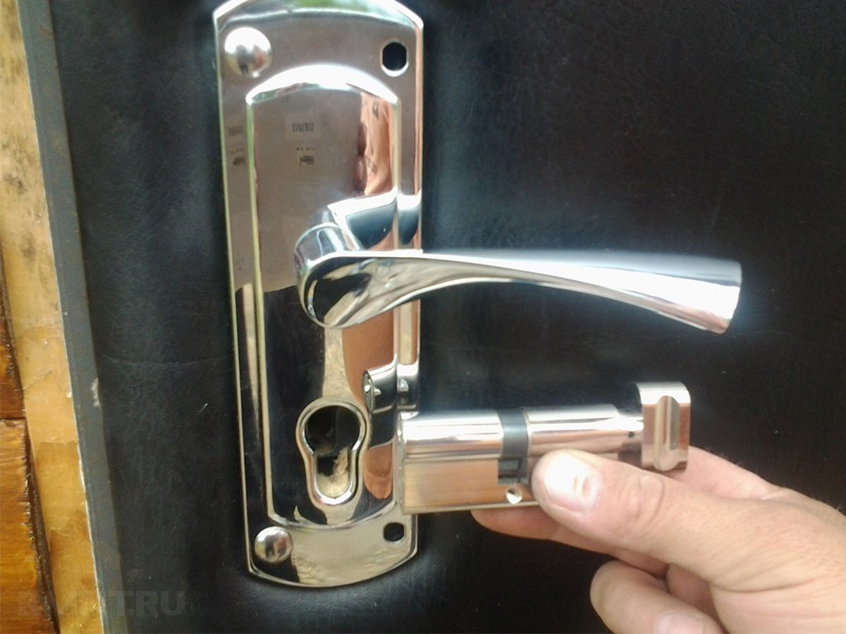 Вставьте ключ в замок с внутренней стороны двери и с его помощью выньте цилиндр;