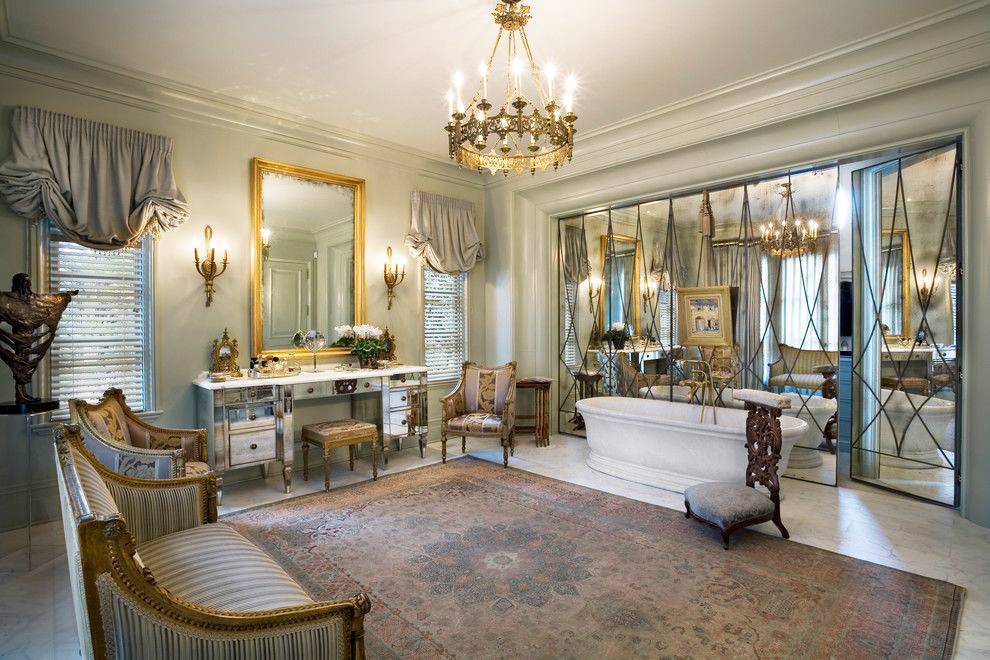 Зеркальная стена в интерьере роскошной ванной комнаты