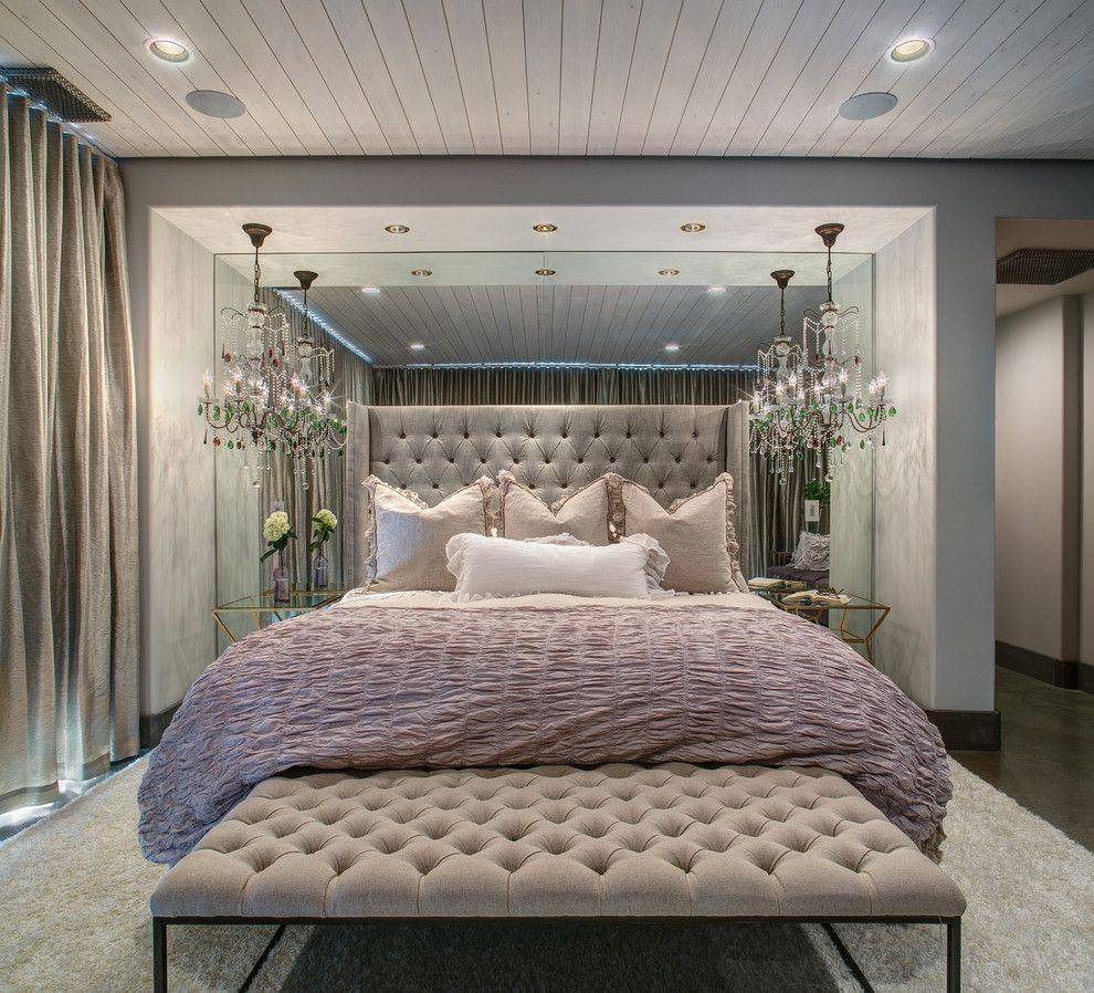 Надписи с зеркальной поверхностью в дизайне спальной комнаты