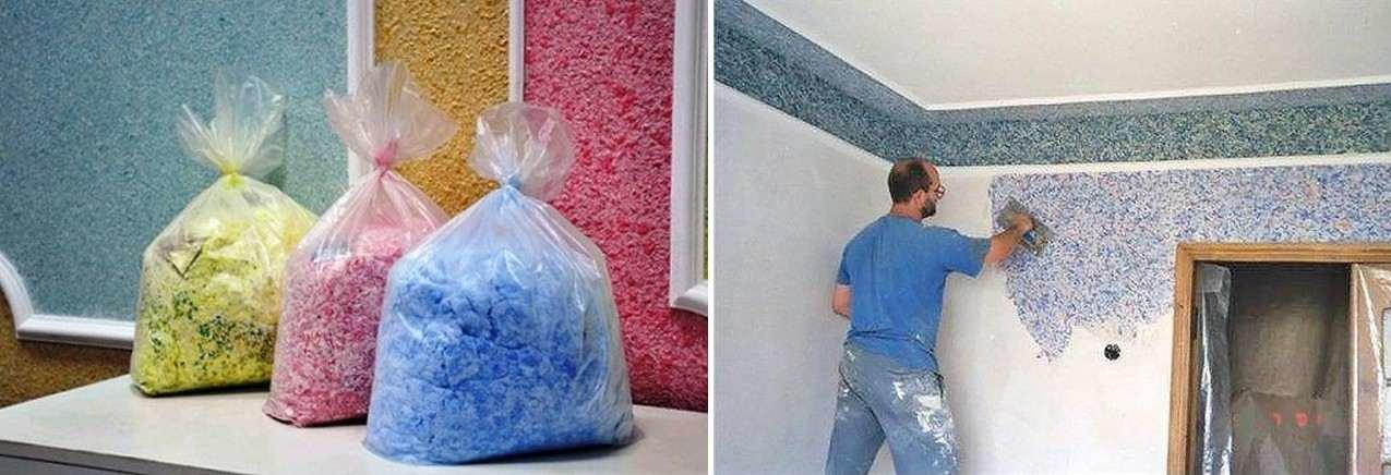 По внешнему виду этот материал во многом напоминает краску или декоративную штукатурку. Он и наносится практически также. Но все же отличия есть и достаточно существенные.