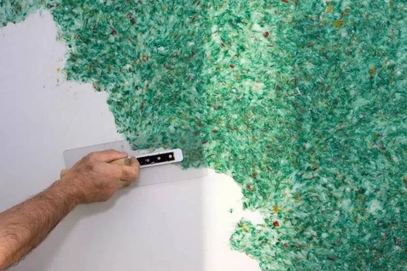 По сути, жидкие обои представляют собой вид финишной декоративной штукатурки – наносятся тем же способом.