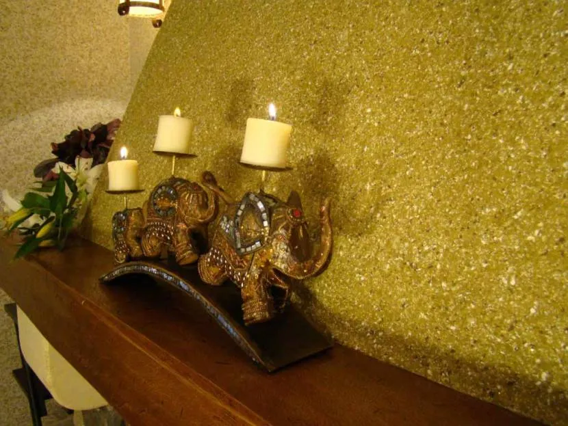 Классический вариант — практически ровное однотонное покрытие. Впрочем, если выбрать смесь с добавлением блесток он будет смотреться интереснее. Советуем попробовать различные сочетания декоративных добавок, чтобы найти идеальное решение.
